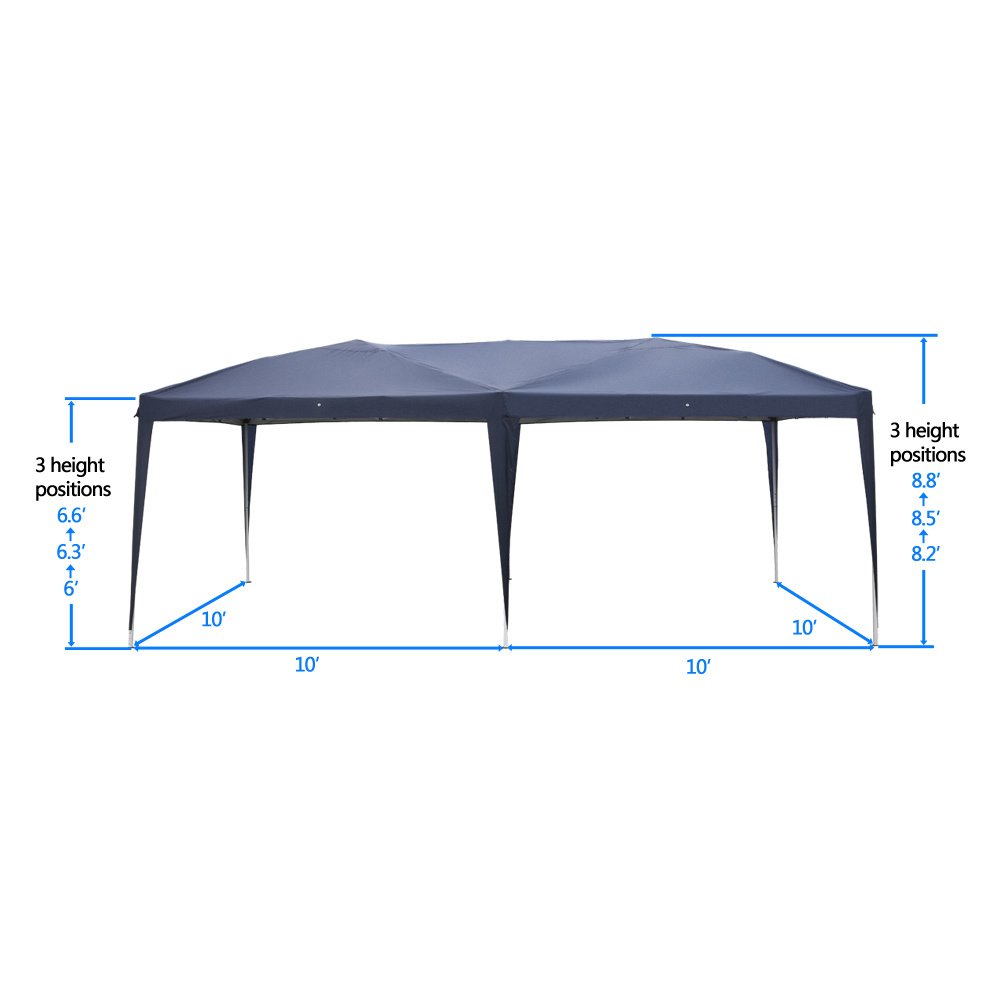 Introductions:What you are viewing now is our 3 x 6m Home Use Outdoor Camping Waterproof Folding Tent with Carry Bag. For this tent, made with premium steel, 210D oxford fabric materials and delicate treatment, it ensures great durability and reliability. It can be conveniently carried and stored due to its smart folding style. In addition, waterproof material makes it extremely fit for outdoor activities. It is easy for installation and disassembly! This tent is practical enough for outdoor or indoor use. Wanna take one back home now? Come on!Features:1. Button design, beautiful, when installed, the hand plays a protective role2. There is an airhole in the edge of the top cloth, which is used to fix the product with a drawstring3. Other sellers can only tie the pull rope to four corners and fix them. Our products can be fixed with pull rope on each side except four corners4. Three levels of adjustable price height5. Top cloth corner to strengthen the design, using new plastic partsSpecifications:1. Material: White Powder Coated Steel Frame & WaterProof 210D Oxford Fabric Cover2. Color: Blue3. Dimensions: (20 x 10 x 8.5)ft / (600 x 300 x 250)cm (L x W x H)4. Weight: 42.99lbs / 19.5kg5. Waterproof: Yes6. Suitable for: All Kinds of EventsPackage Includes:1 x Tent1 x Carry Bag1 x Instruction